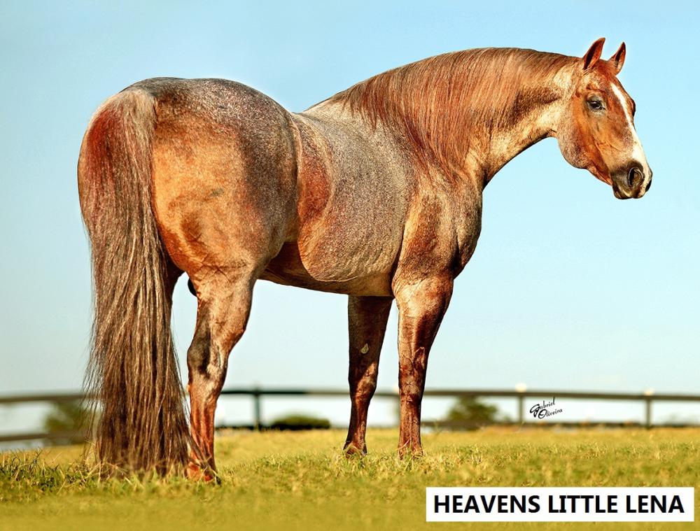 Pedigree de HEAVENS LITTLE LENA, Importado. U$ 28.237,00. 4o.L Memphis Open Futurity; finalista Bonanza 5/6-Year-Old Open; finalista Brazos Bash Open Classic. Pai de:
