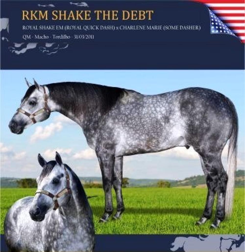 Sua mãe ANNALU SHAKE EM THO é filha de RKM SHAKE THE DEBT, Importado, é um dos únicos filhos no Brasil de ROYAL SHAKE EM, SI-104. 9 vitórias e US$ 257 mil em premios, seus filhos possuem mais de 650 pontos de RMT AQHA e mais de US$ 10,9 milhões em ganhos na Corrida. Avô materno de 20 ganhadores clássicos como: DM HOT HOT HOT, AAA-97, 6 vitórias, U$177.897,00 em prêmios, 1º no New Mexico Classic Derby (G2), etc.; GREY DAZE: AA-89, 3 vitórias, U$174.715,00 em prêmios, 1º no TQHA Sale Futurity (G2), etc. Entre os 100 melhores reprodutores de Três Tambores em todos os tempos, sendo pai de ganhadores de mais de U$300.000,00.