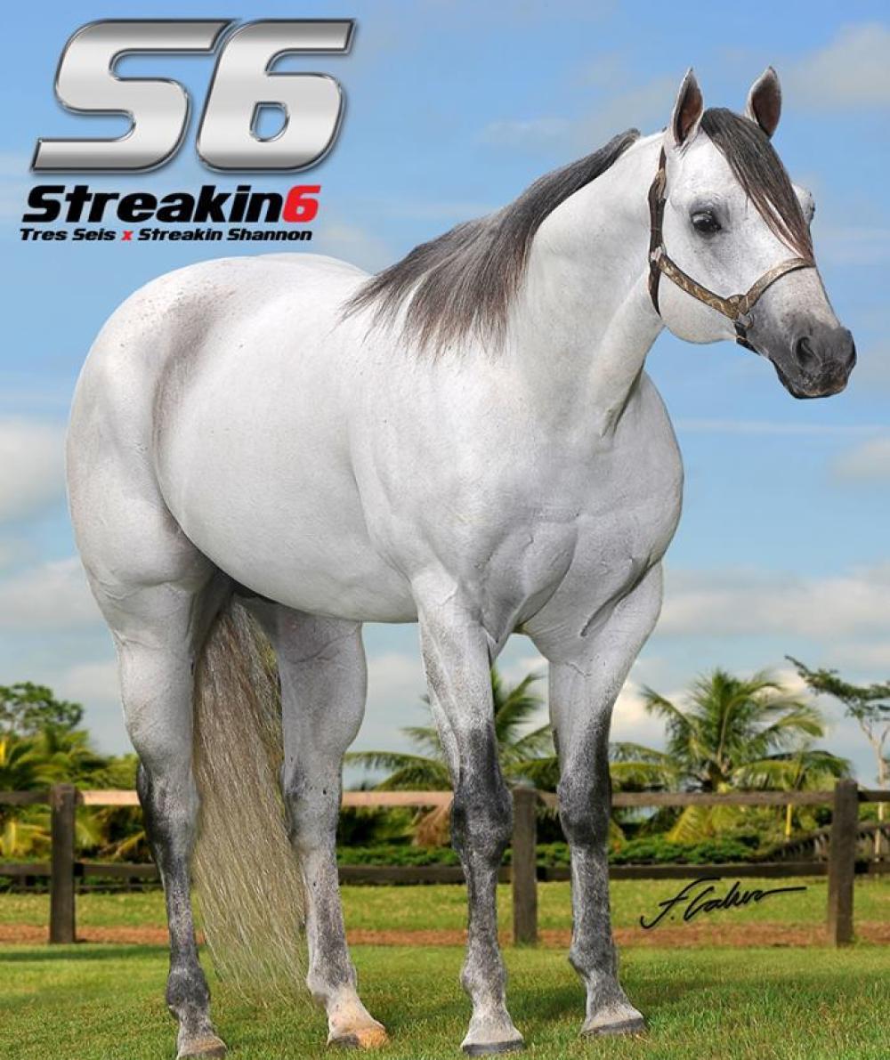 O tordilho STREAKIN 6 foi o primeiro descendente do grande TRES SEIS a servir no Brasil.