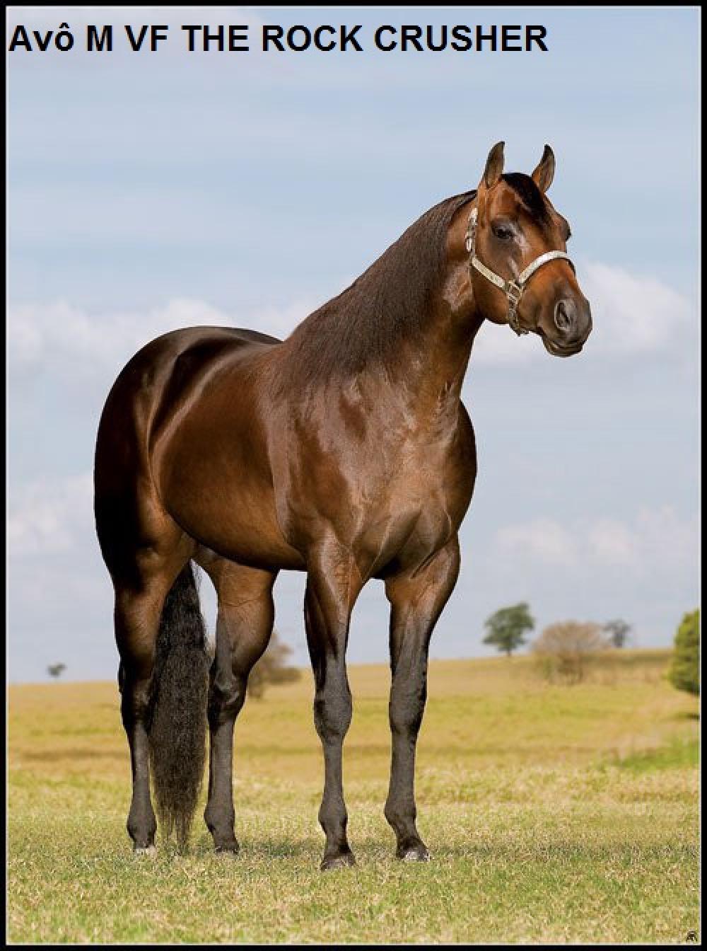 Sua mãe MISS FIRST ROCK JA filha de VF THE ROCK CRUSHER: Importado. Ganhador de U$32.713,00 em Três Tambores nos EUA. Campeão do Wrangler Heartland, Campeão do Old Fort Days Futurity Consolation, Res.Campeão do Future Fortunes, Res.Campeão do Fizz Bomb Futurity, etc. Seus filhos estrearam em 2013, sendo que sua filha DJAY LADY marcou história ao vencer o primeiro “Slot Race” realizado no Brasil. Atualmente ocupa a 20ª colocação entre os maiores reprodutores de Tambor em Baliza pelo SGP Sistema com R$709.615,30 de produção, sendo que pela ABQM seus filhos acumulam 1.600 pontos em várias modalidades. Pai de Campeões como: LORELLAY CRUSHER, DJAY LADY, EVELYN CRUSHER, UMA LADY CRUSHER G, ZD SARAH MORENA, ZORRO CRUSHER JAMPC, LADY TROUBLE CRUSHER, etc.