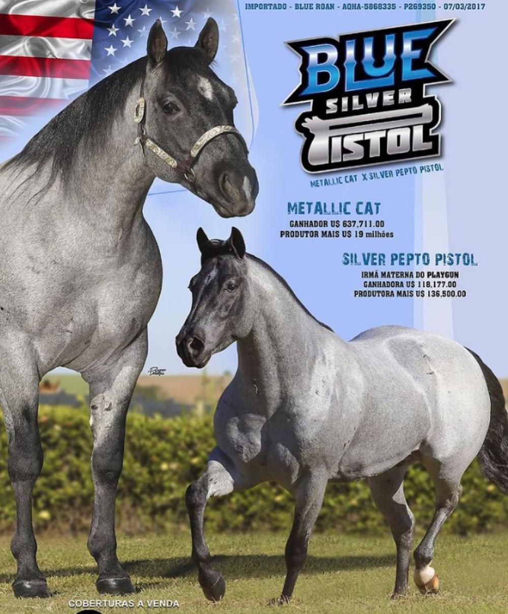 Seu pai, BLUE SILVER PISTOL, Importado, soma 267 pontos na ABQM, sendo um dos garanhões de trabalho mais pontuados de todos os tempos no Brasil, sagrou-se Campeão Nacional Ranch Sorting Jv, Res Campeão Copa Dos Campeões Abqm Team Penning Ab, 3º Nacional Abqm Ranch Sorting Ab Sr, 3º Lugar Congresso Abqm Ranch Sorting Am Fem. Seus Filhos Estreiam Em 2025.
