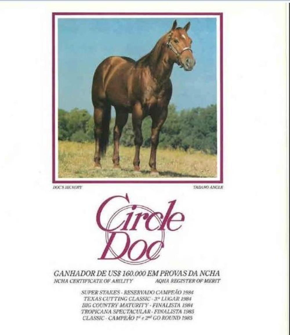 Filho direto de CIRCLE DOC, Importado, ganhador de US$160.000,00. Res. Campeão NCHA Super Stakes, Finalista do NCHA Derby, do Big Country Maturity, 3º Texas Cutting Classic, Finalista do Tropicana Spetacular. Produziu no Brasil Campeões Potro Futuro e Nacional em Apartação, Rédeas, Bulldogging e Laço.