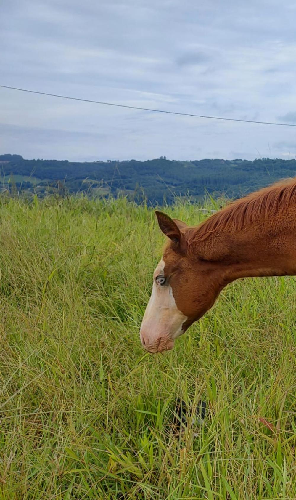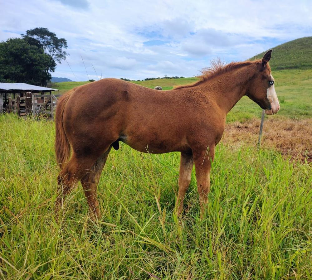 - Potro "cara branca", dois olhos azuis e calçado nas 4 patas