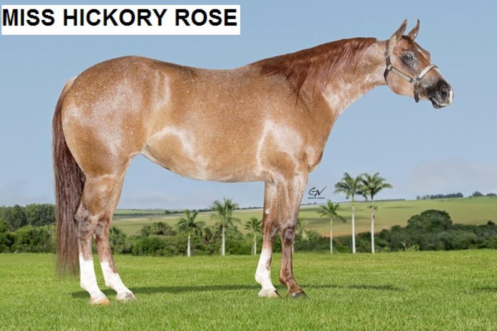 Sua mãe MISS HICKORY ROSE filha de SAN PEPTO, Importado, produtor em 6 modalidades, seus filhos somam 122,5 pts ABQM. Pai de STAR LITTLE NEVADA, Res Campeão Copa Campeões Team Penning Am Light, 3o.L Derby ABQM Ranch Sorting Am; AUREA DUAL LENA SLB, Campeã Derby ABQM Ranch Sorting Am; etc..