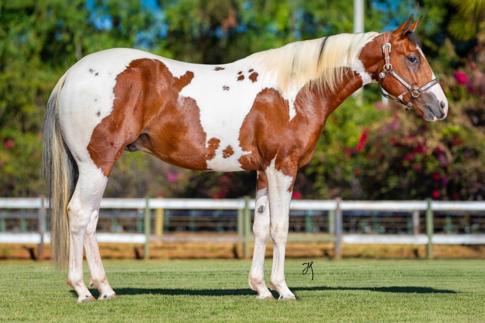 Seu pai PLAYBOYS HEART Importado. Único neto homozigoto do lendário garanhão americano de Apartação, FRECKLES PLAYBOY. Produtor de: HEART SANADOC HSA, Campeão Nacional ABC Paint/17 em Três Tambores (Test Horse), etc.; FLY HEART TY AFFAIR, Campeã Nacional ABC Paint/17 em Conformação (Aberta-Fêmeas-1 ano), etc.